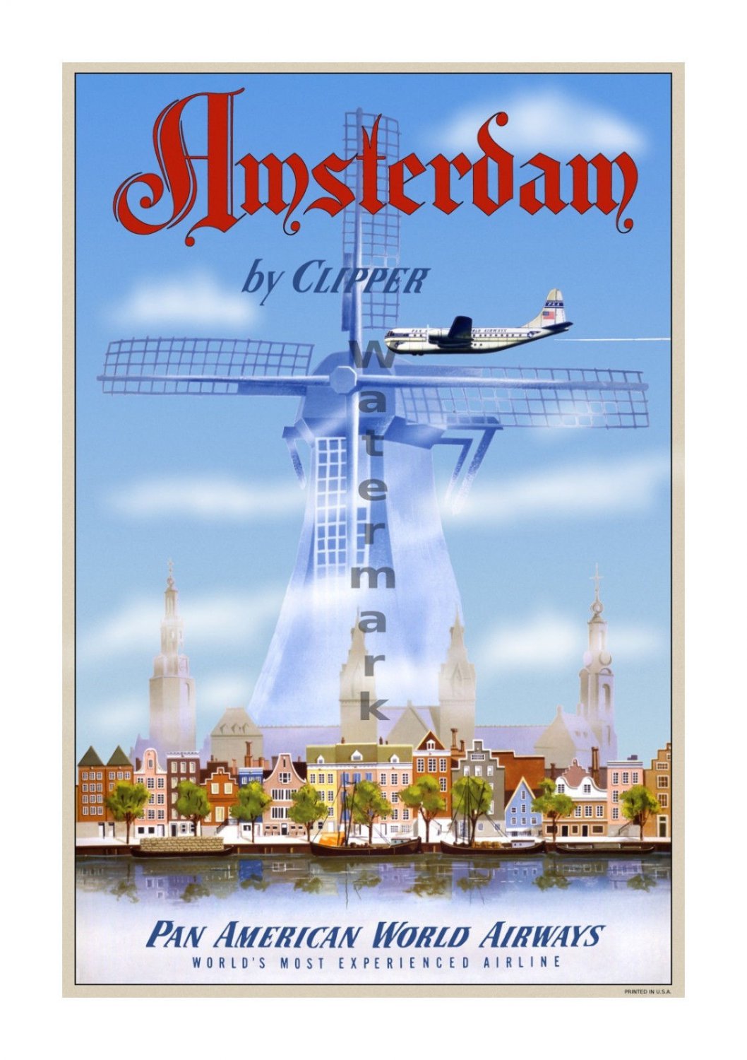 ![Pan Am Amsterdam - Vintage Airline Travel Poster 6 sizes, matte+glossy www.ecrater.compan am vintage travel poster airline amsterdam avail matte glossy sizes than available